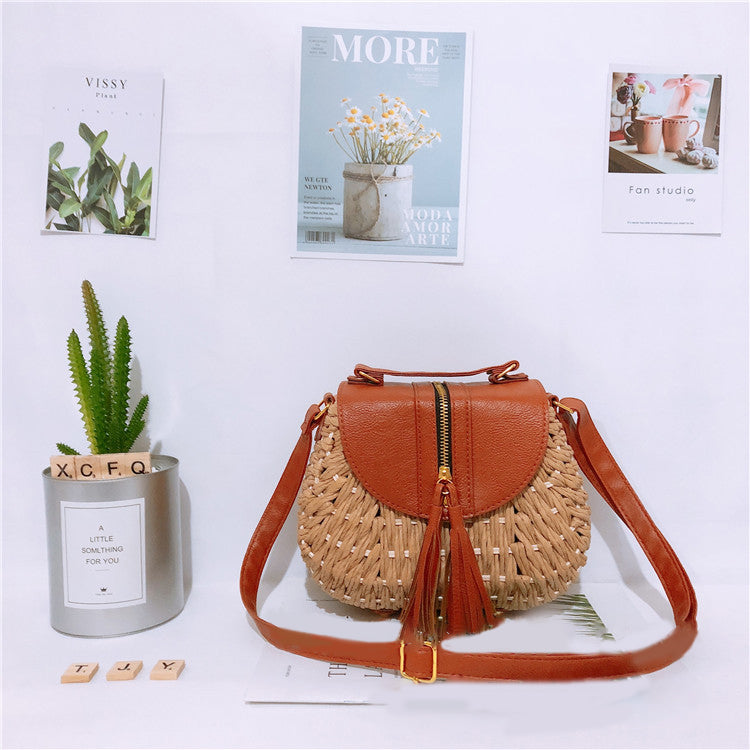 Bamboo Weaving Leather Flap Tassel Shoulder Bag