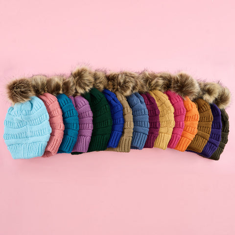 - Cozy up against the cold this season with our most loved pom-pom beanies. Knit from the same super soft acrylic is known for and adorned with the cutest, puffiest faux fur pom-pom, these will keep you warm and right on-trend. Layer them up with all your cold-weather favs! With so many colors to choose from, you will reach for these over and over... we promise!